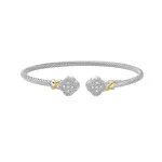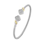 Sterling Silver 18K Yellow Gold .10ctw Diamond Clover Cuff Bangle
