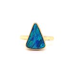 14K Yellow Gold Triangle Australian Opal Ring