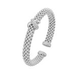 Sterling Silver Polished Prosecco Puffy X Popcorn .11ctw Diamonds Cuff Bangle